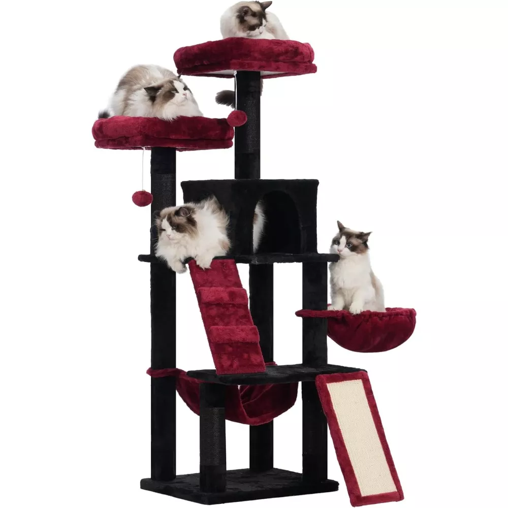 60″ Tall Cactus Cat Tree with Condo, Hammock & Self-Grooming Brush