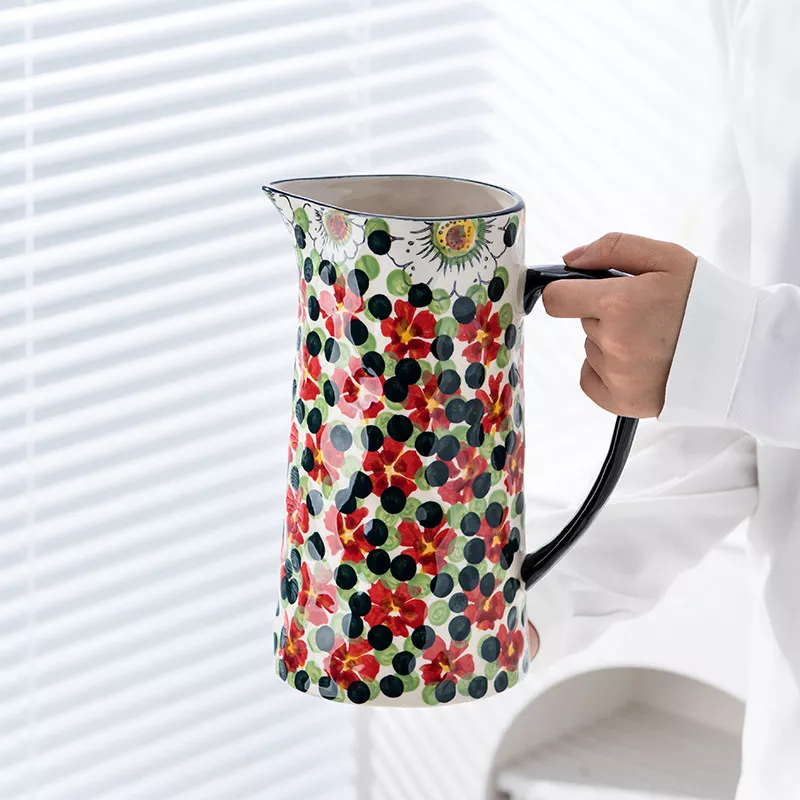 Vintage Floral Ceramic Kettle Vase for Nordic Home Table Decor