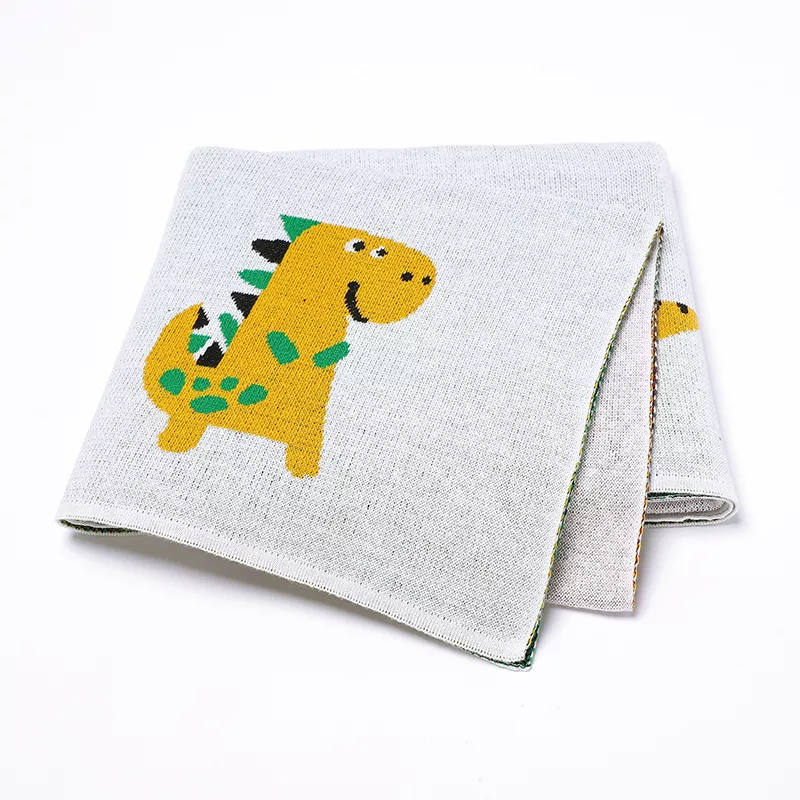 Soft Cotton Knit Newborn Baby Blanket – Cute Cartoon Dinosaur Design 39″x31″ for Swaddling & Stroller