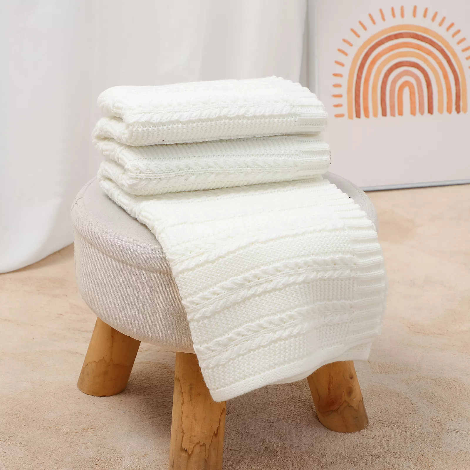 Super Soft Baby Knit Blanket for Newborns – Cozy Solid Plaid Swaddle Wrap