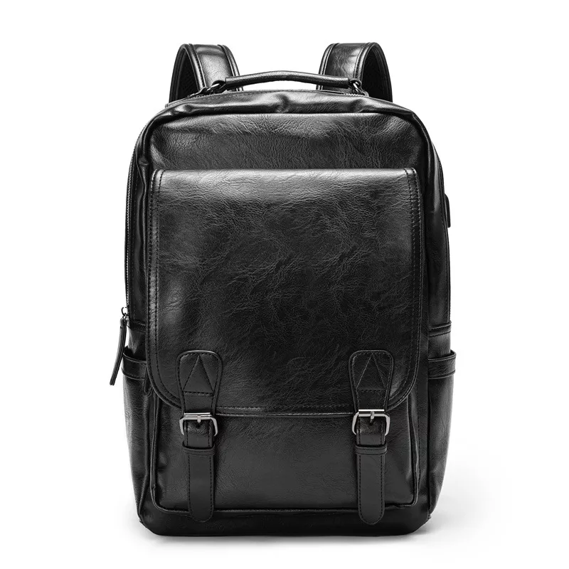 Leather Travel Laptop Backpack with USB Charging Port