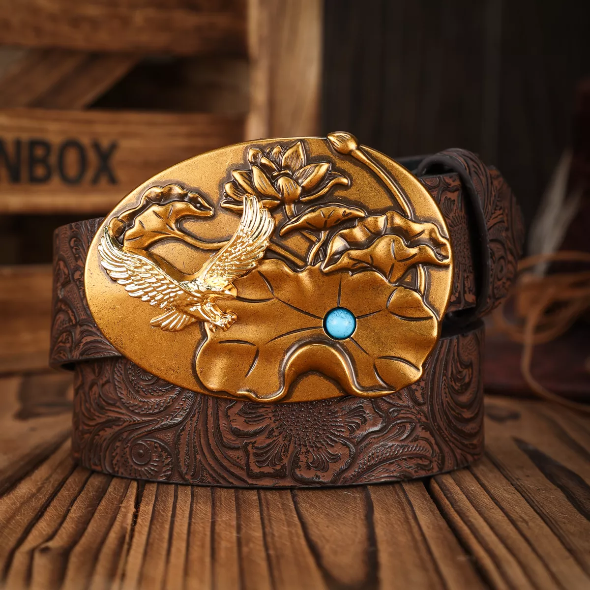 Men’s Vintage Full-Grain Leather Belt with Solid Brass Buckle