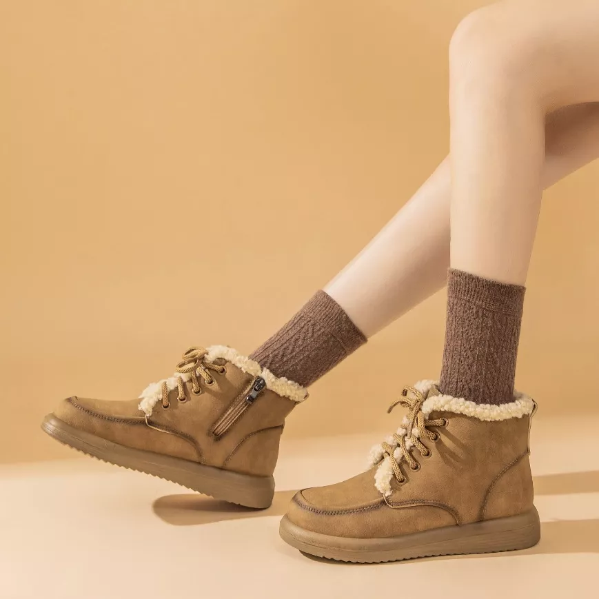 Women’s Genuine Leather Winter Ankle Snow Boots with Plush Lining