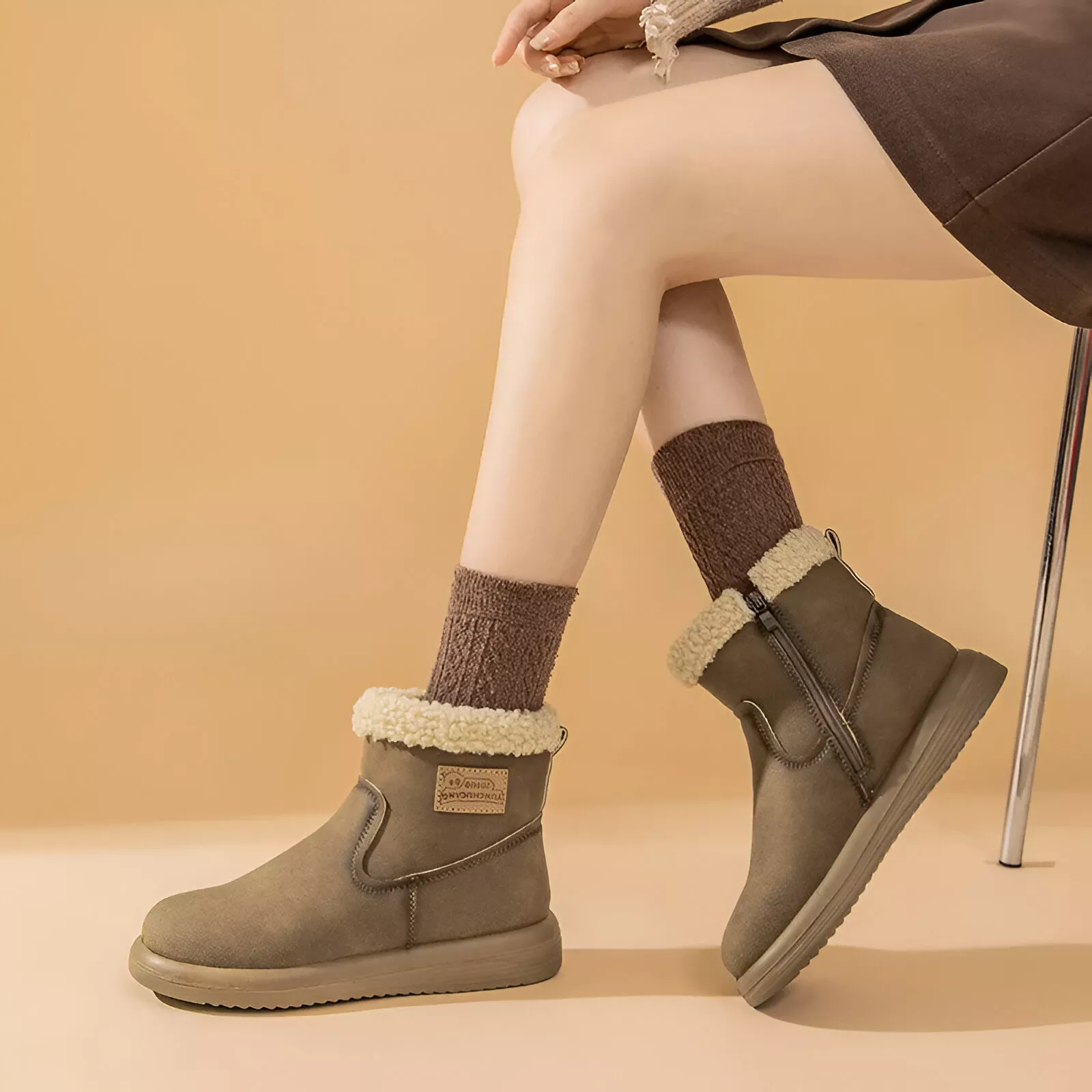 Women’s Genuine Leather Winter Snow Boots with Plush Lining & Non-Slip Sole