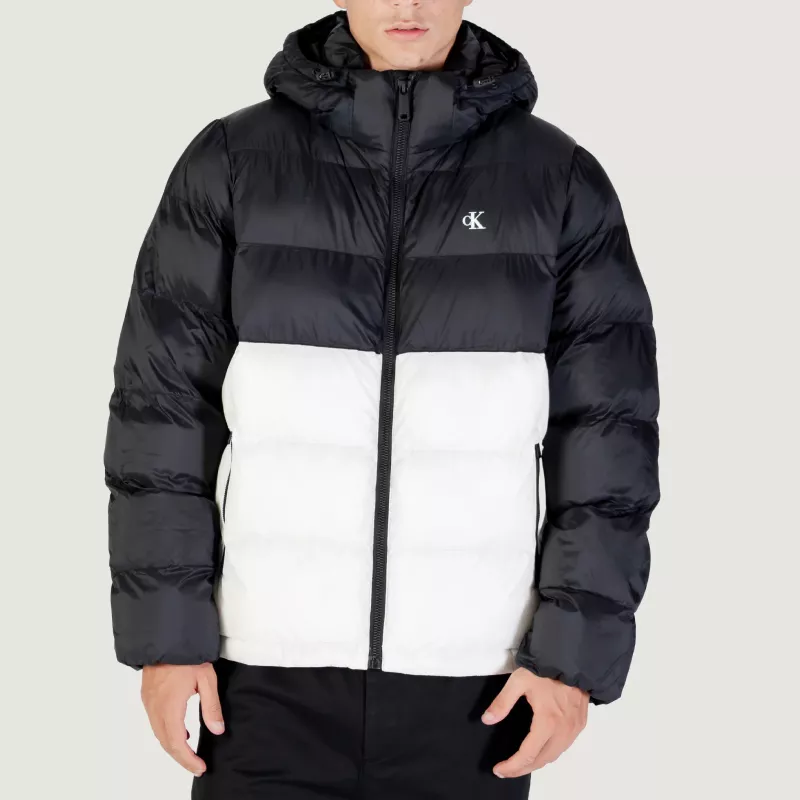 Calvin Klein Jeans Men’s White Winter Jacket with Hood and Turtleneck