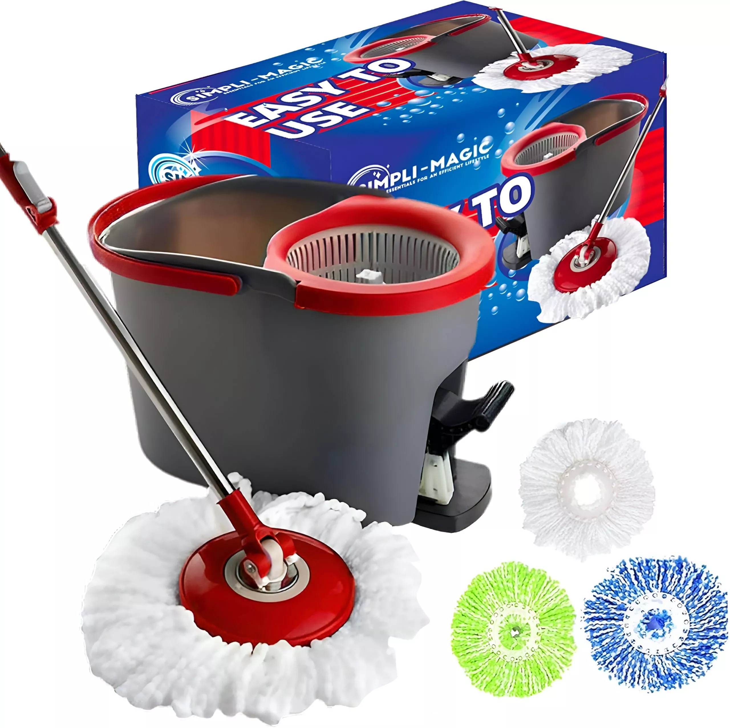 Spin Mop Cleaning System with 3 Microfiber Mop Heads