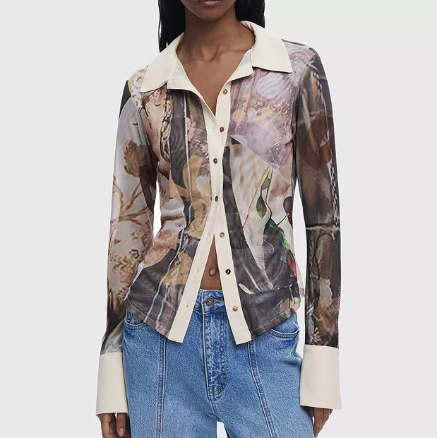 Desigual Black Floral Button-Up Shirt for Women