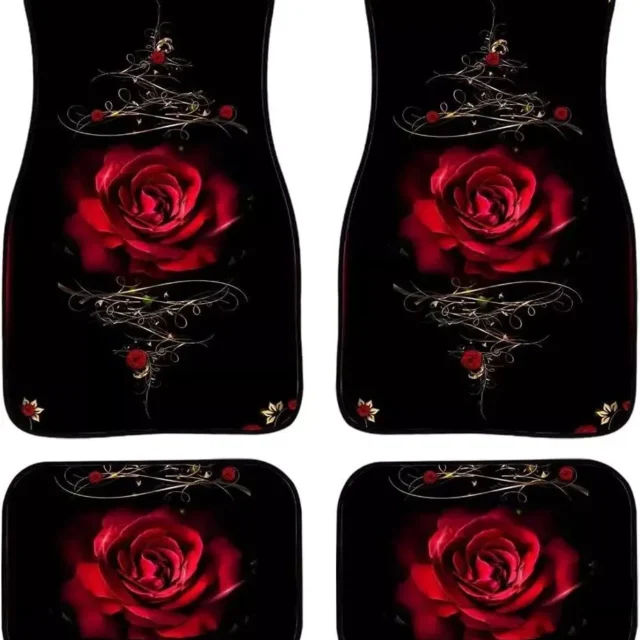 • Stylish Design: The vibrant red rose print adds a feminine touch and elevates your car’s interior.