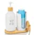 This three-piece set includes a refillable plastic container, a pump dispenser, and a paper cup holder, making it easy to maintain a clean and clutter-free bathroom space. Crafted from durable, eco-friendly materials, it is designed to be long-lasting and reusable, helping you reduce waste while adding a touch of organization to your countertop.
