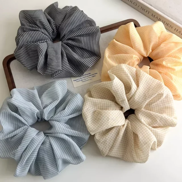 Unlike ordinary hair ties, our scrunchies double as a fashion accessory. Their charming checked design stands out, making them perfect for adding a pop of personality to casual outfits or complementing dressier ensembles. Use them to style your hair when you need a quick yet stylish solution—whether it’s for a brunch date, a workout session, or a busy day on the go.