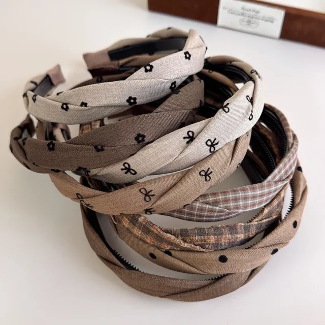 Retro Coffee Color Plaid Headbands – Stylish Bow Twist Hair Accessories