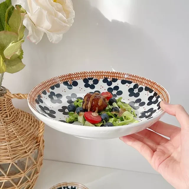 Retro Hand-Painted Floral Ceramic Bowl – Unique Plate for Rice, Ramen & Desserts