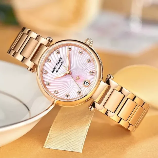 Indulge in the perfect blend of elegance and precision with this stunning rose gold automatic women’s watch. Designed to captivate, its radiant white dial is adorned with sparkling diamond accents, offering a sophisticated yet modern charm. Whether you’re dressing for an evening soirée or elevating your everyday style, this timepiece adds a touch of luxury to every moment.