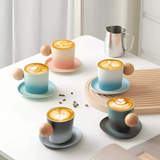 Indulge in the beauty of slow moments with a cup that reflects your taste for quality and charm. Add this Ceramic Coffee Cup and Saucer Set to your collection today and make your coffee time something truly memorable.