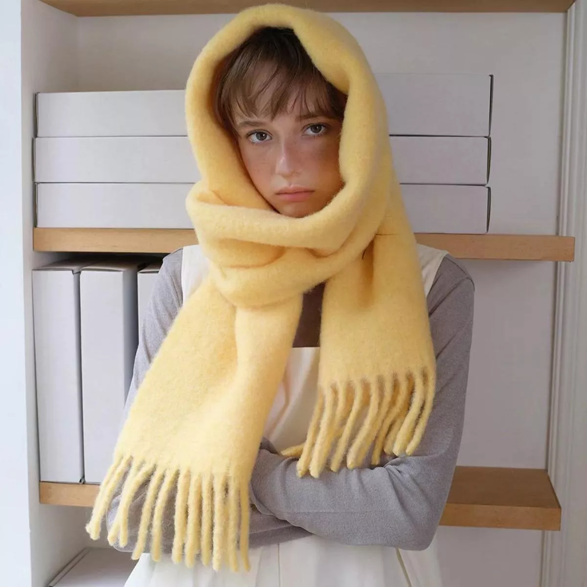Luxuriously Warm Long Fringe Wool Scarf for Women – Winter Shawl