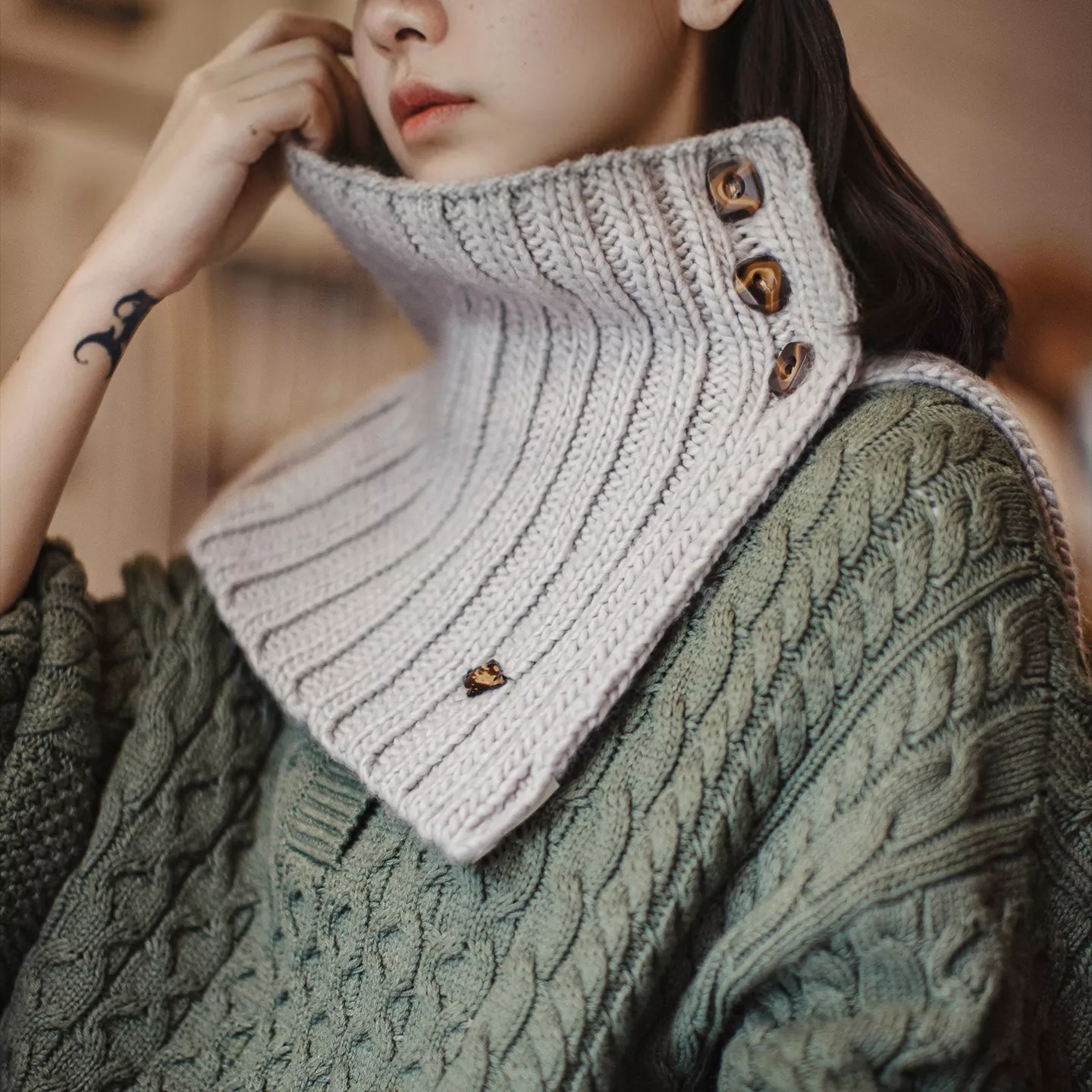 Women’s 100% Wool Pearl-Edge Knitted Neck Collar Scarf