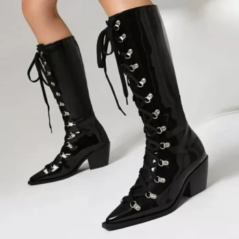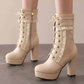 Women’s Lace-Up Mid-Calf Platform Boots – High Heels, Plus Sizes