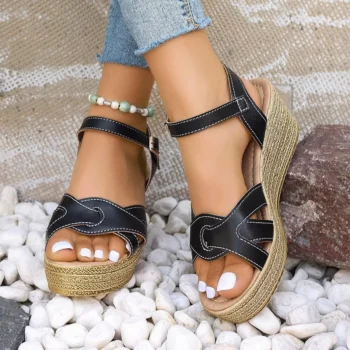 Summer Women’s Fashion Weaving T-Strap Roman Sandals