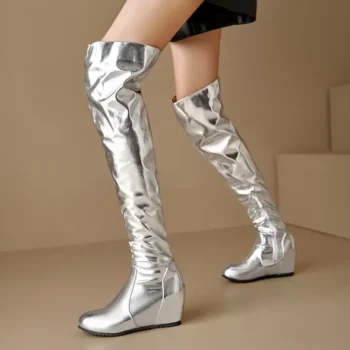Women’s Knee High Patent Leather Boots with Wedge Heels