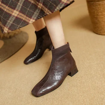 Women’s Square Toe Ankle Boots with High Block Heels