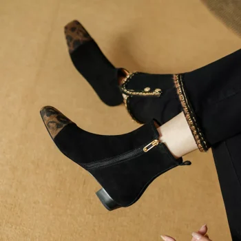 Women’s Suede Ankle Boots with Square Heel and Pointed Toe