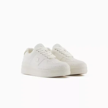 Armani Exchange Women’s White Platform Sneakers with Lace-Up Design