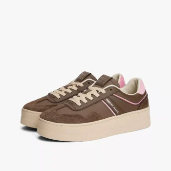 Tommy Hilfiger Women’s Platform Sneakers – Brown Faux Leather Fall Style