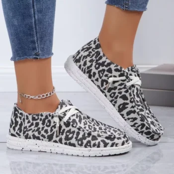 Women’s Spring Canvas Leopard Lace-up Loafers