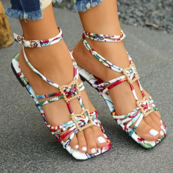 Women’s High-Heeled Rhinestone Square Head Open-Toed Sandals