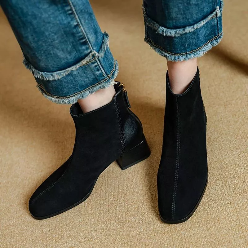 Women’s Winter Suede Chelsea Boots with Square Heel and Round Toe