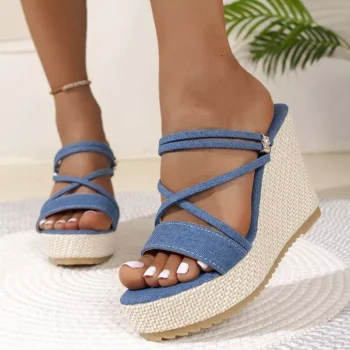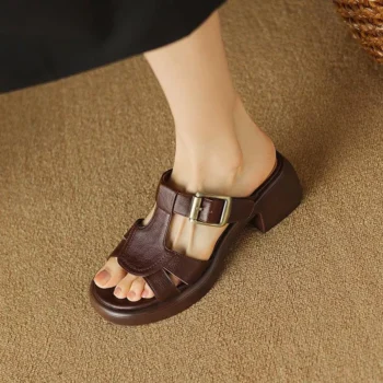Summer Women’s Fashion Weaving T-Strap Roman Sandals