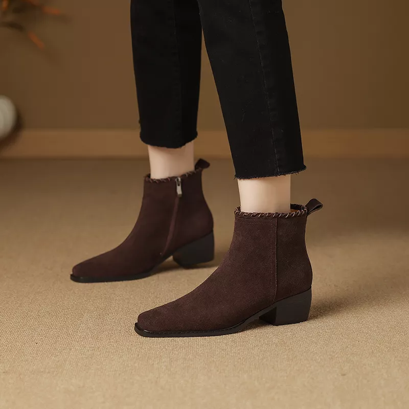 Winter Suede Thick Heel Ankle Boots for Women