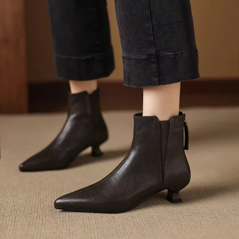 Elegant Pointed Toe Genuine Leather Ankle Boots for Women