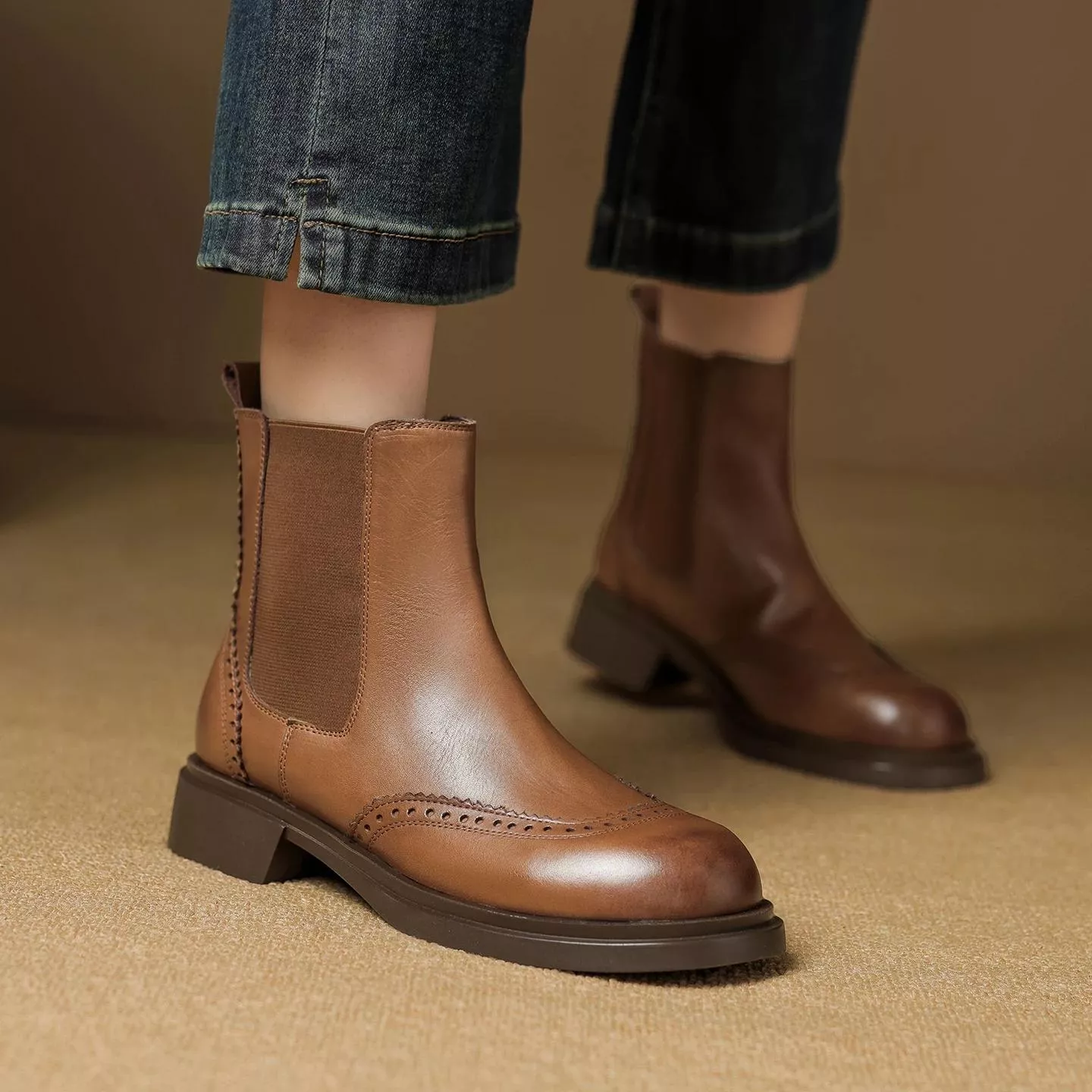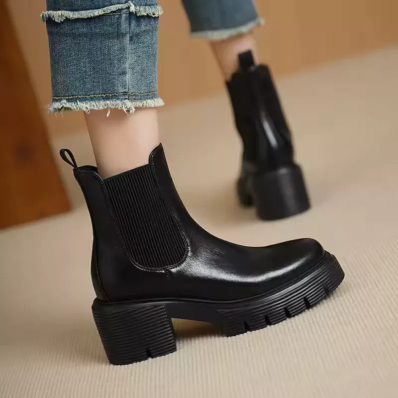 Winter Women Chelsea Boots – Genuine Leather, Chunky Heel Ankle Boots