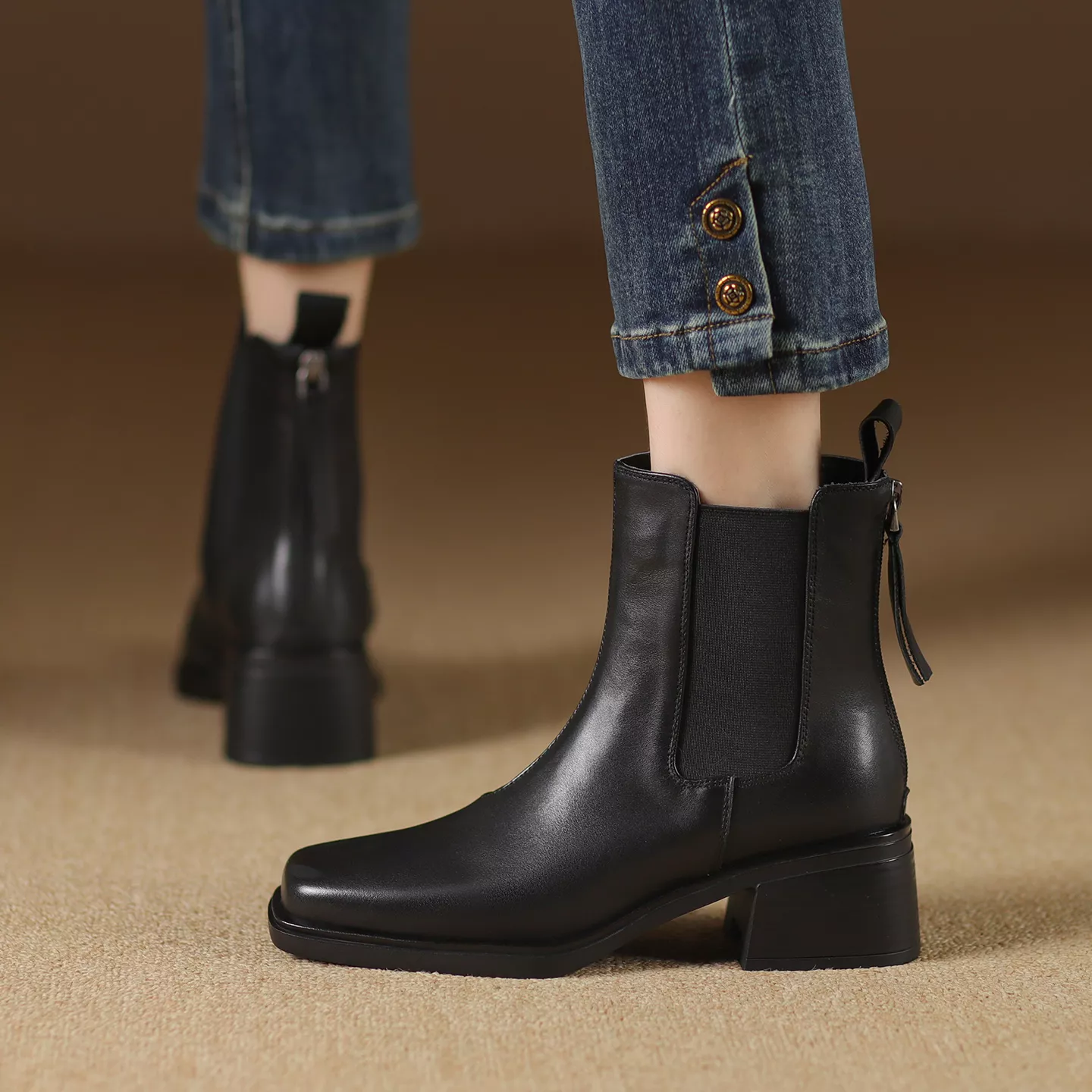 Genuine Leather Women’s Ankle Boots – Stylish Zip Up Chelsea Boots for Winter