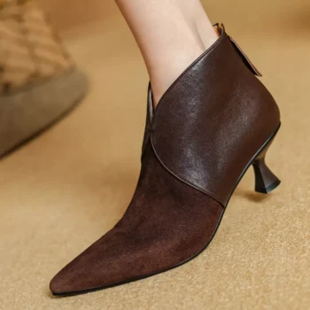 Women’s Genuine Leather Patchwork High Heel Ankle Boots with Zipper – Elegant Daily Dress Shoes