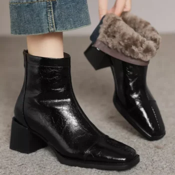 Elegant Sheepskin Square Toe Ankle Boots for Women – 4.5cm Heel