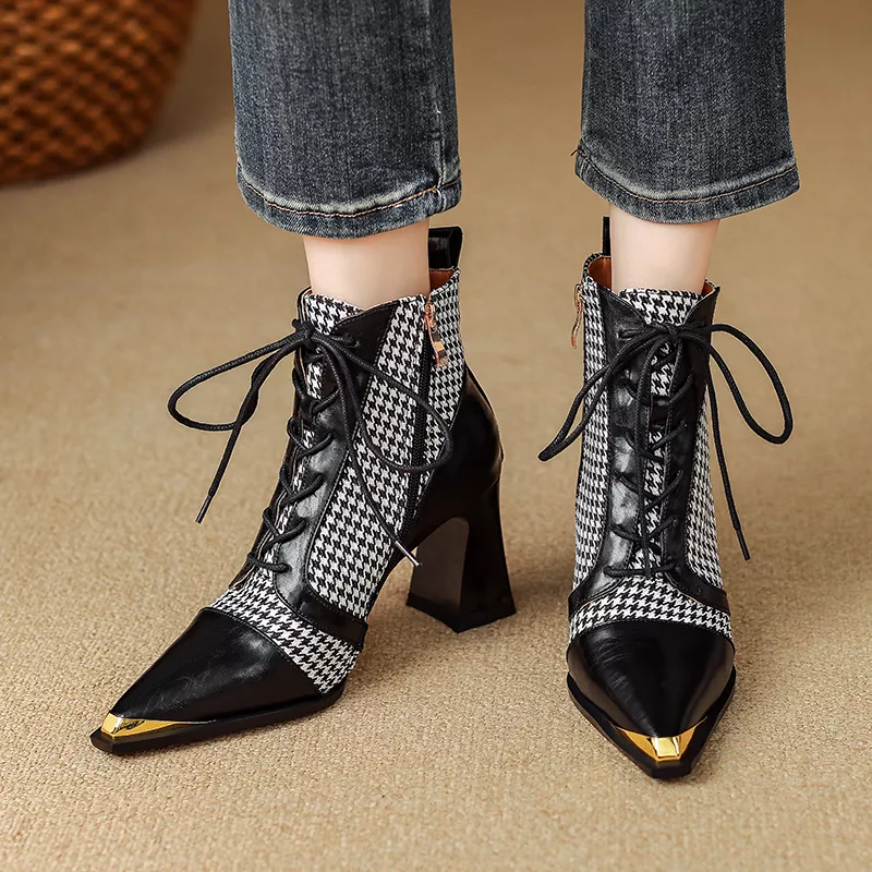 Women’s Retro Chunky Heel Ankle Boots with Pointed Toe