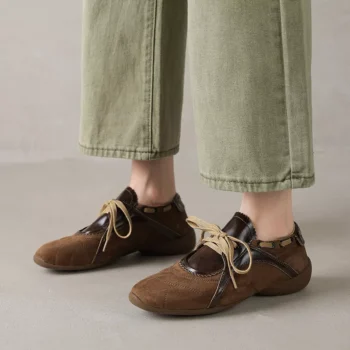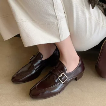 Autumn Women’s Split Leather Loafers with Chunky Heel and Belt Buckle