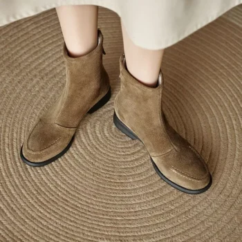 Autumn Suede Leather Chelsea Boots for Women – Low Heel Slip-On Ankle Boots