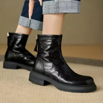 Autumn Genuine Leather Women’s Pointed Toe Chunky Heel Ankle Boots
