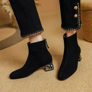 Autumn Suede Ankle Boots for Women with Mid Block Heel