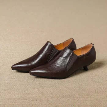 Elegant Genuine Leather Pointed Toe Kitten Heel Pumps for Women