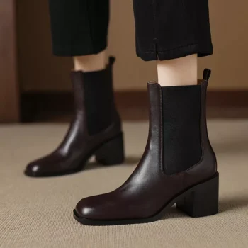 Autumn Genuine Leather Chelsea Boots for Women with Chunky Heel