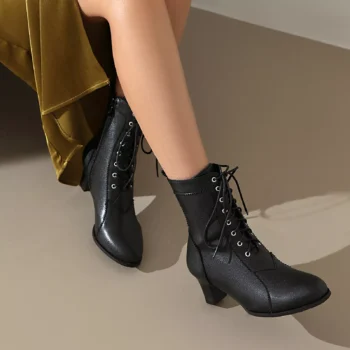 Women’s Pointed Toe Ankle Boots with Thin High Heels and Retro Edge