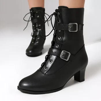 Buckled Ankle Boots for Women – Black & White, Low Heel, Size 35–48