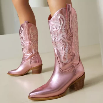 Luxury Women’s Block Heel Cowboy Ankle Boots – Pink, Green, Plus Sizes