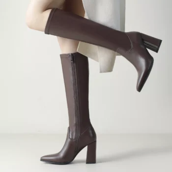 Sexy Women’s Knee-High Boots with Pointed Toe and 3.3 Inch Block Heels