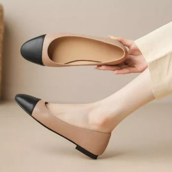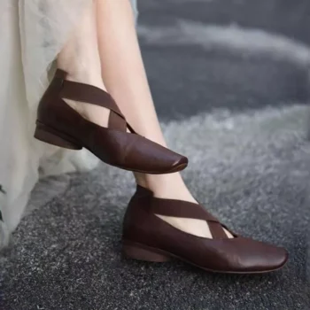 Women’s Genuine Leather Cross Band Loafers with Thick Low Heels