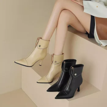 Women’s Zipper Ankle Boots High Heel Pointed Toe